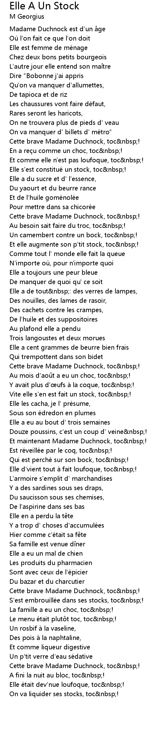 | Elle s' est constitue un stock, toc nbsp! | |