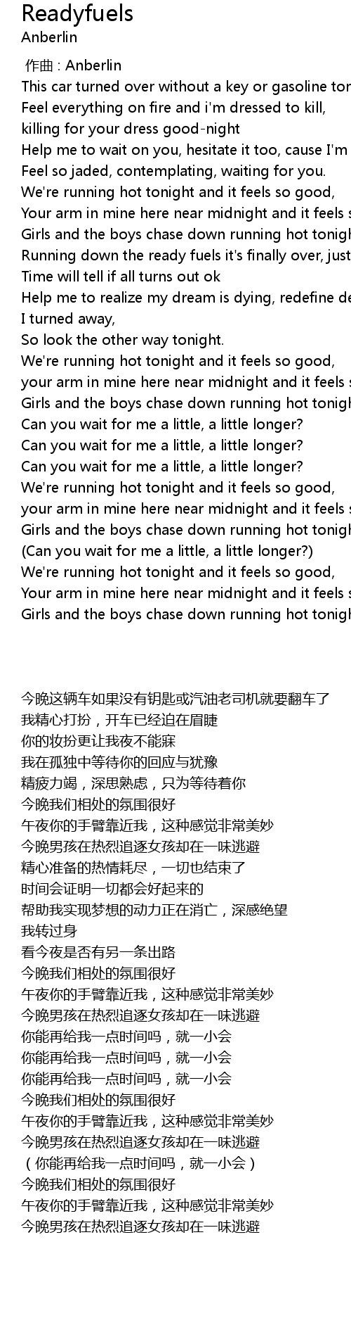 | [03:03.33] | Girls and the boys chase down running hot tonight |