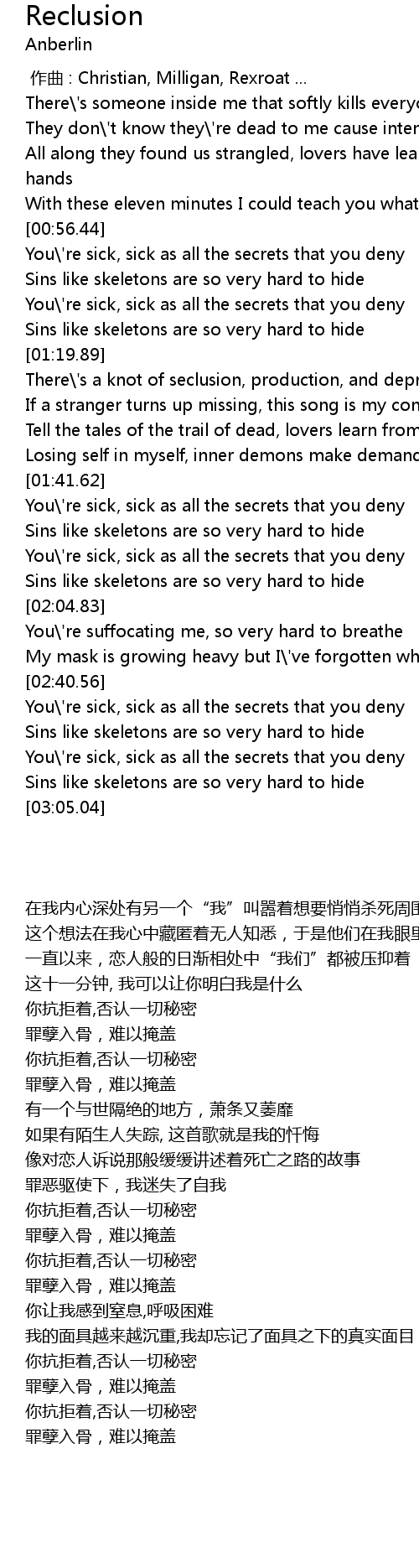 | [02:53.11] | You' re sick, sick as all the secrets that you deny |