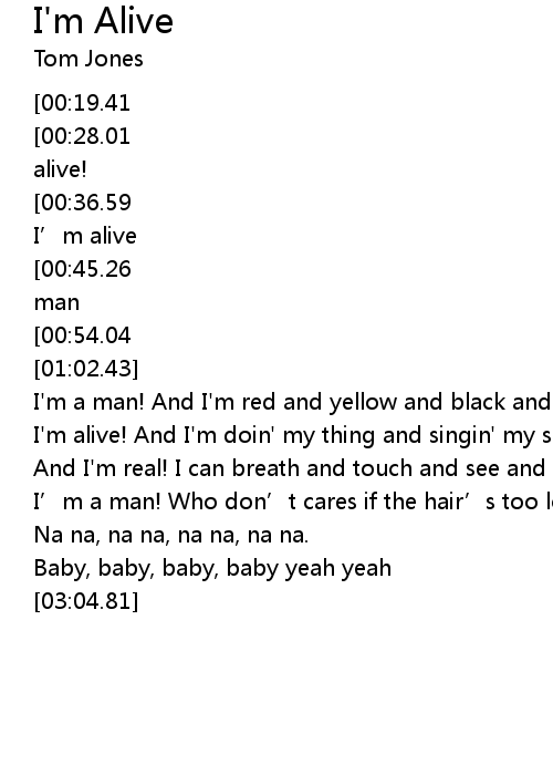| [01:10.85] | I'm alive! And I'm doin' my thing and singin' my song, I'm alive! |