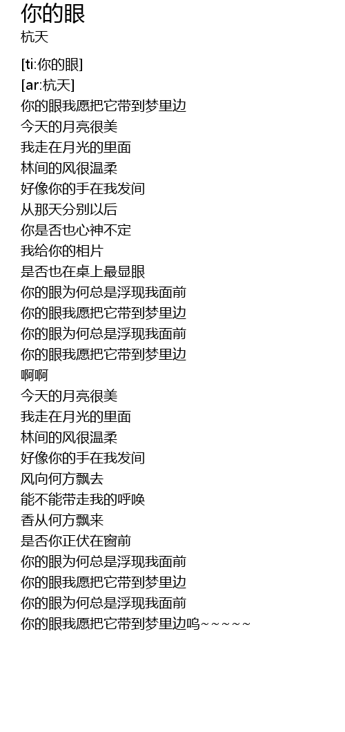 | [01:43.553] | 你的眼我愿把它带到梦里边 |