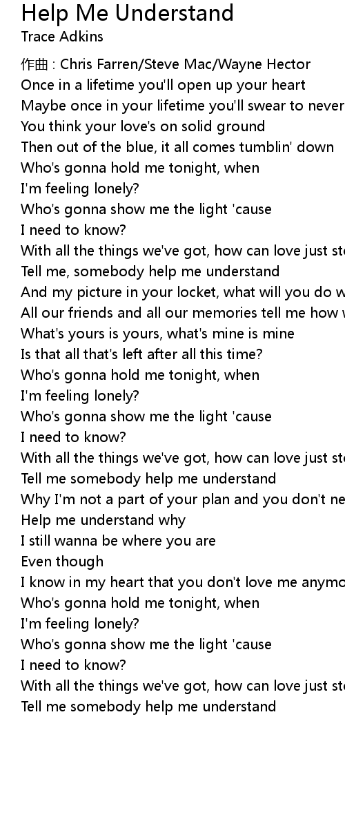 | Tell me somebody help me understand | |