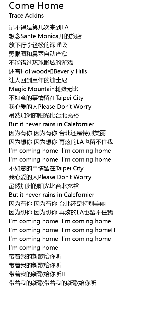 | [02:48] | 因为想你 因为想你 再炫的LA也留不住我 |