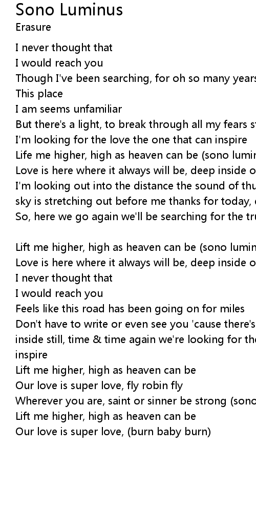 | Lift me higher, high as heaven can be (sono luminus) | |