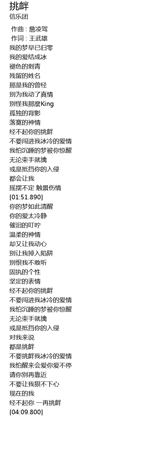 | [03:04.880] | 经不起你的挑衅 |