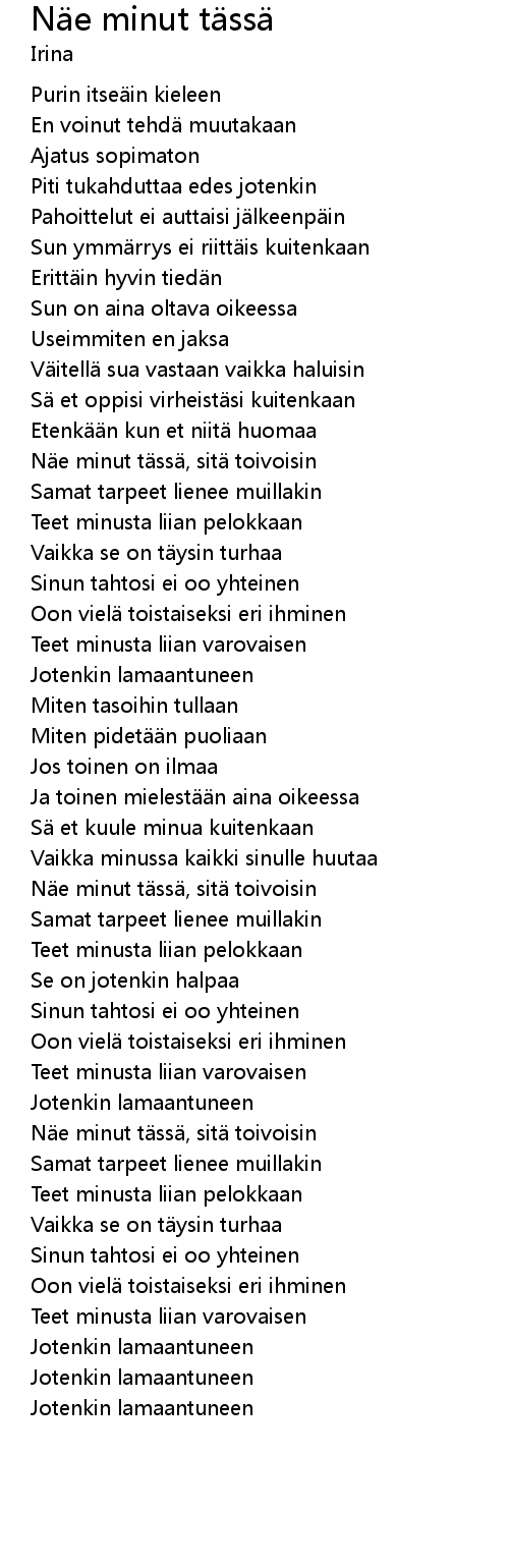 | N e minut t ss, sit toivoisin | |