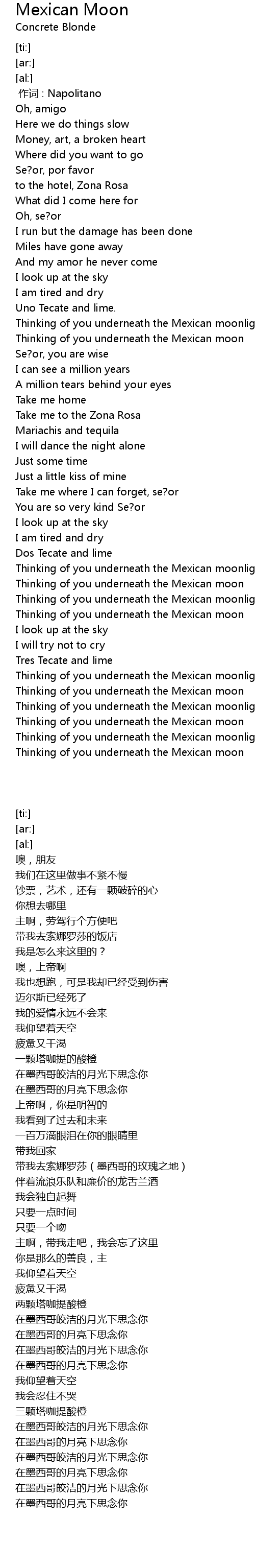 | [04:14.61] | Thinking of you underneath the Mexican moon |