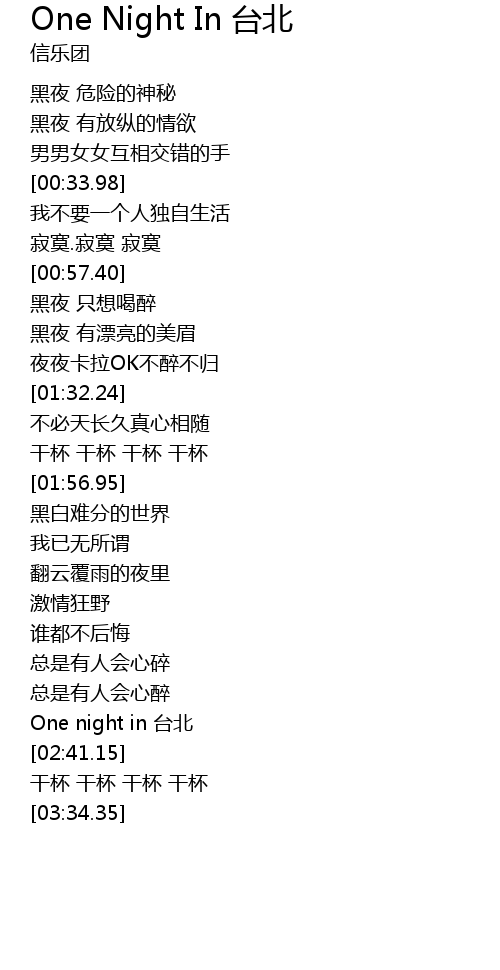 | [02:35.87] | One night in 台北 |