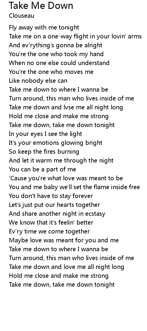 Take me down, take me down tonight |