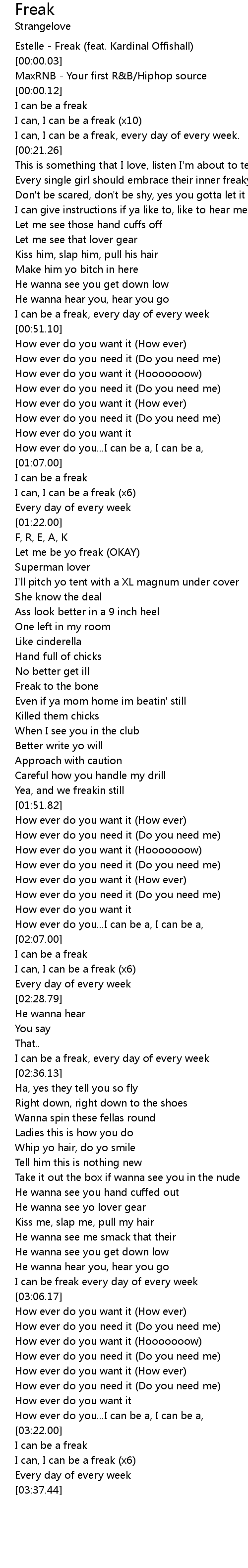 [00:00.00] Estelle - Freak (feat. Kardinal Offishall)