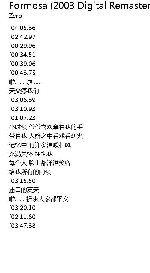 | [03:24.74][03:06.39][00:57.98] | 啦…… 啦…… |