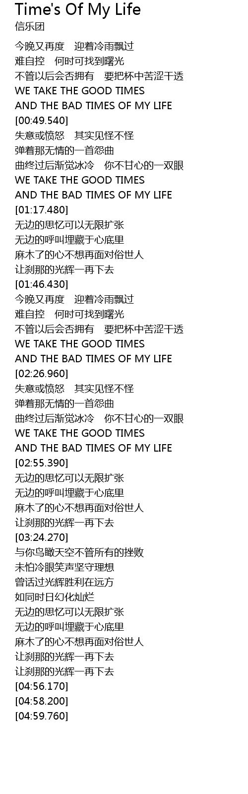 | [00:44.400] | AND THE BAD TIMES OF MY LIFE |