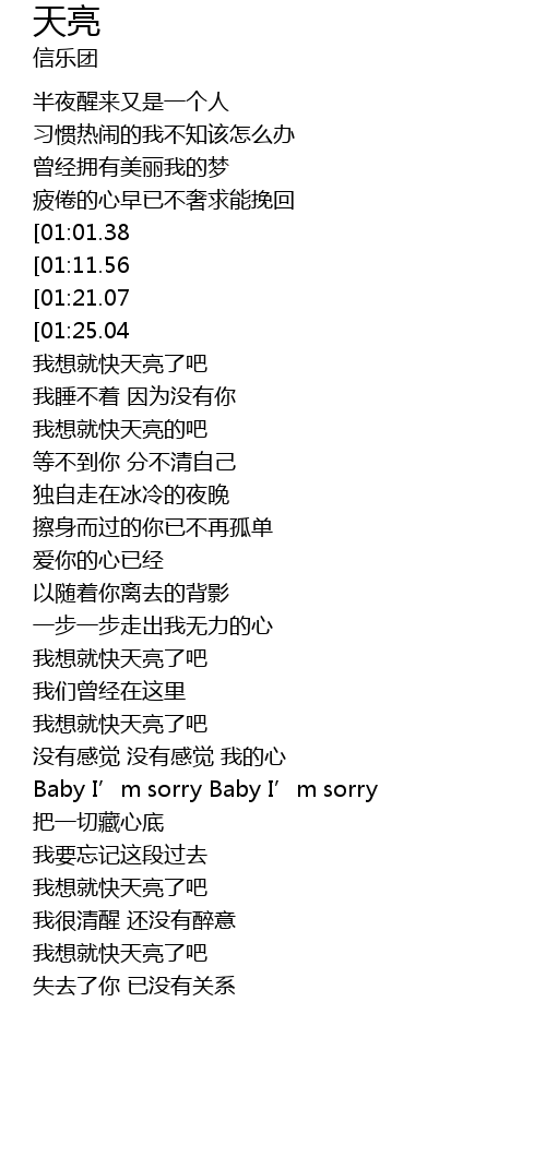 | [02:50.66][01:11.56] | Baby I' m sorry Baby I' m sorry |