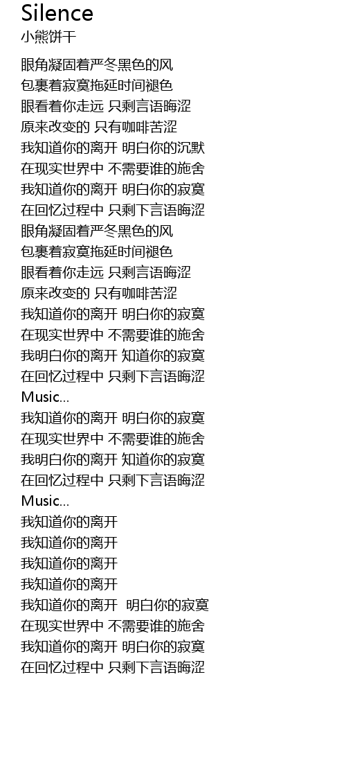 | [00:59.330] | 我知道你的离开 明白你的沉默 |
