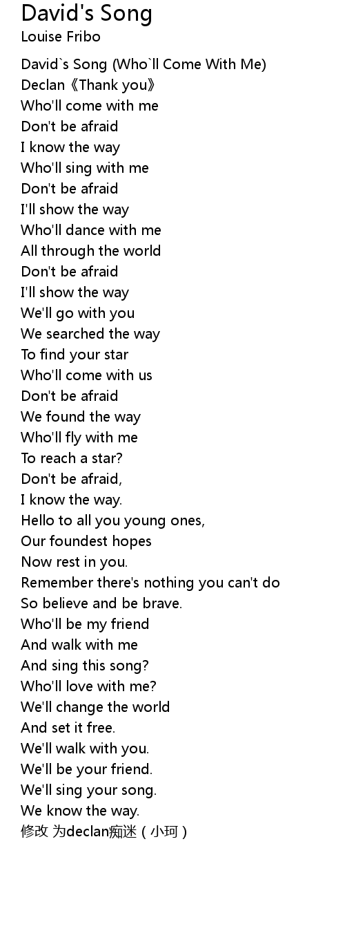 | [00:01.00] | David s Song Who ll Come With Me |