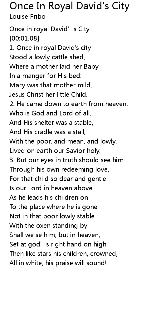 | [00:00.00] | Once in royal David' s City |