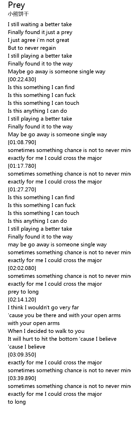 | [00:04.460] | Finally found it just a prey |