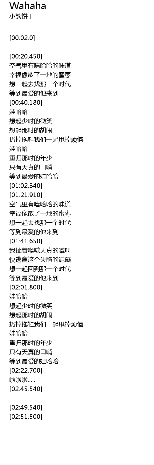 | [02:19.820] | 等到最爱的娃哈哈 |
