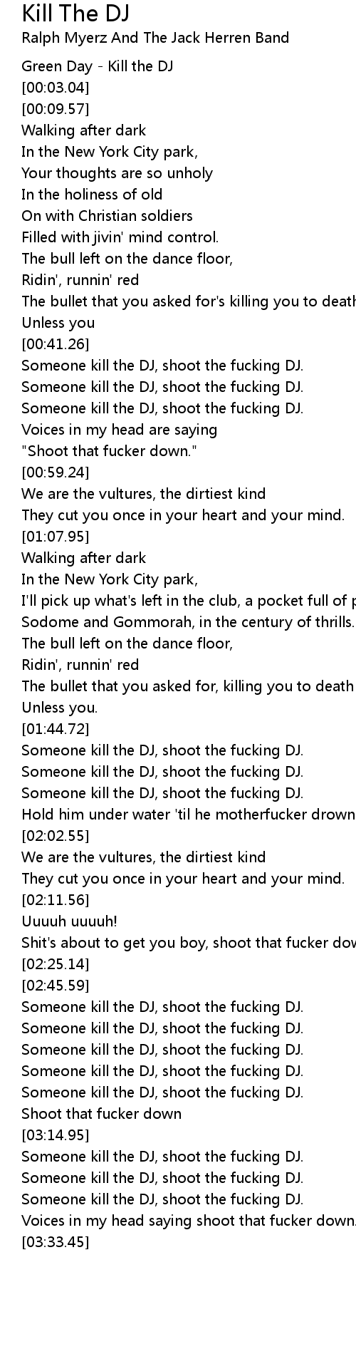 Someone kill the DJ, shoot the fucking DJ. |