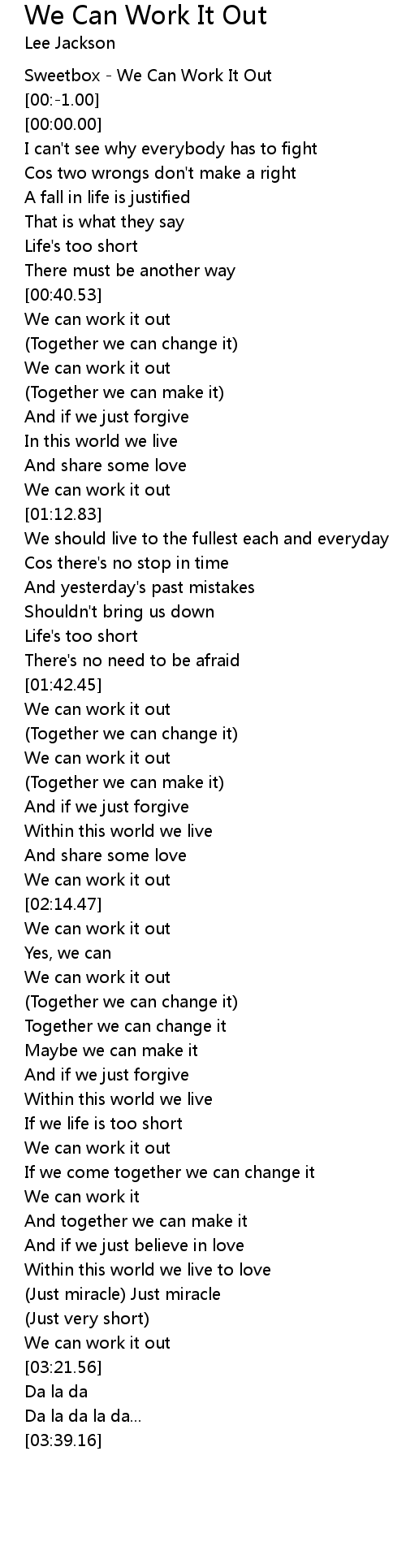 Sweetbox - We Can Work It Out |