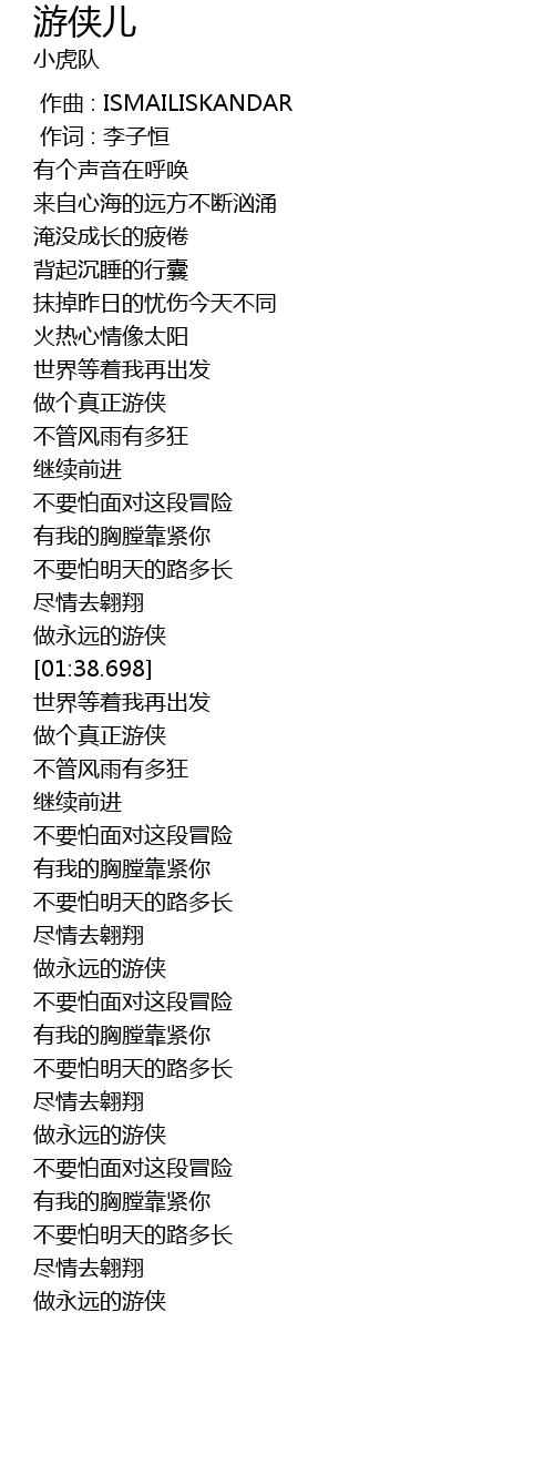 | [02:03.918] | zuò gè zhēn zhèng yóu xiá |