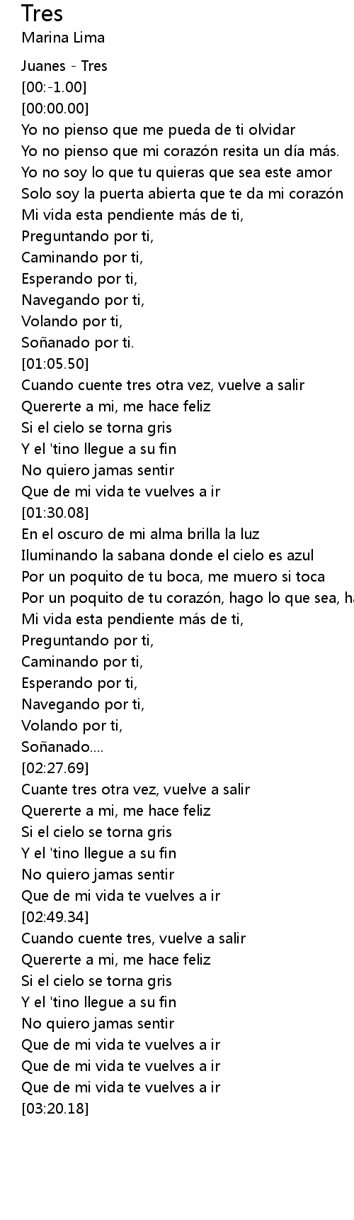 | [03:15.63] | Que de mi vida te vuelves a ir |