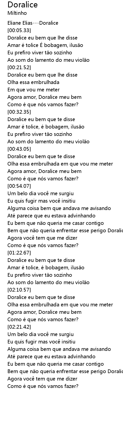 | [00:49.13] | Agora amor, Doralice meu bem |