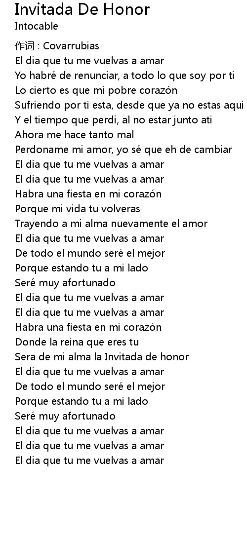 | Song | Invitada De Honor |