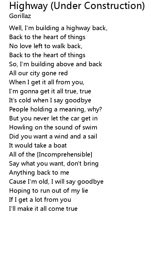 Well, I'm building a highway back, |