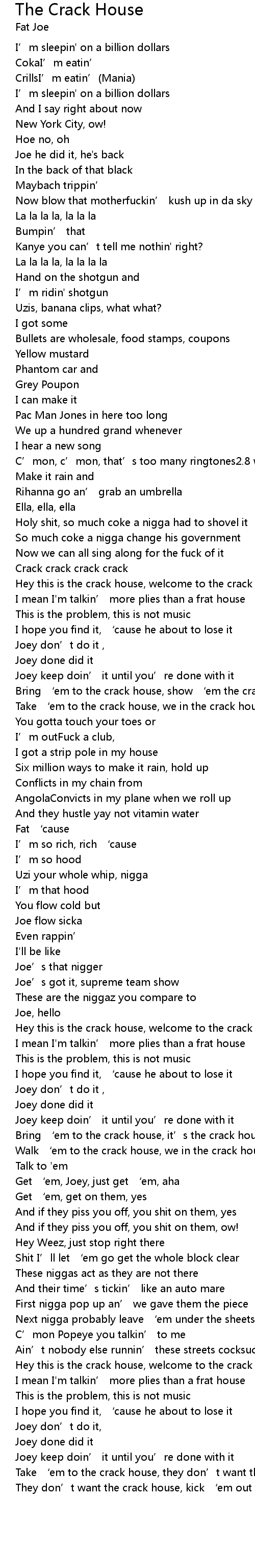 | Take ‘em to the crack house, we in the crack house | |