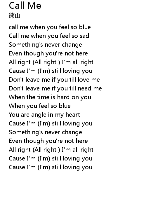 | call me when you feel so blue | |
