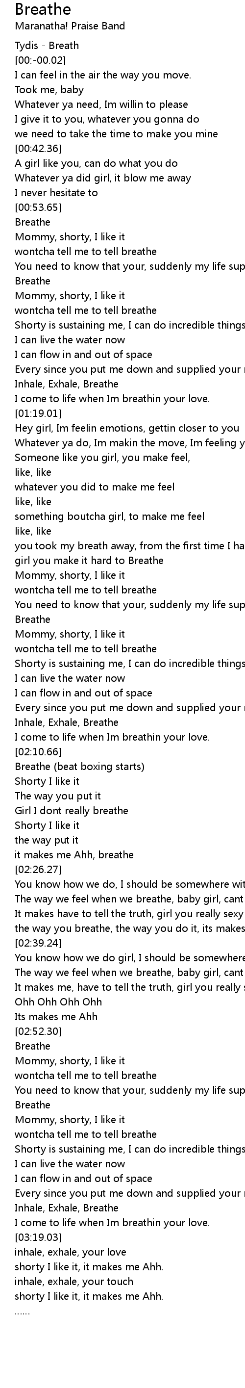 | [02:10.94] | Breathe (beat boxing starts) |
