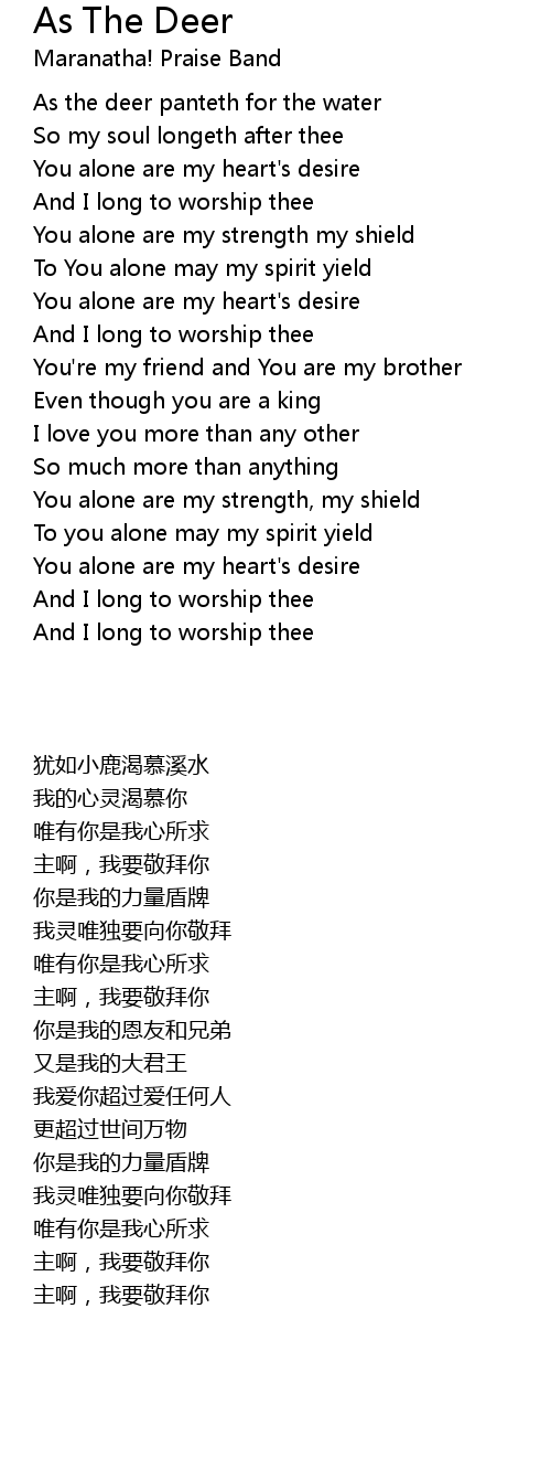 As the deer panteth for the water |