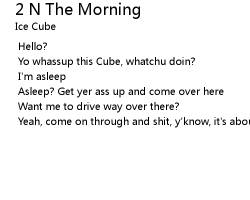 | Song | 2 N The Morning |