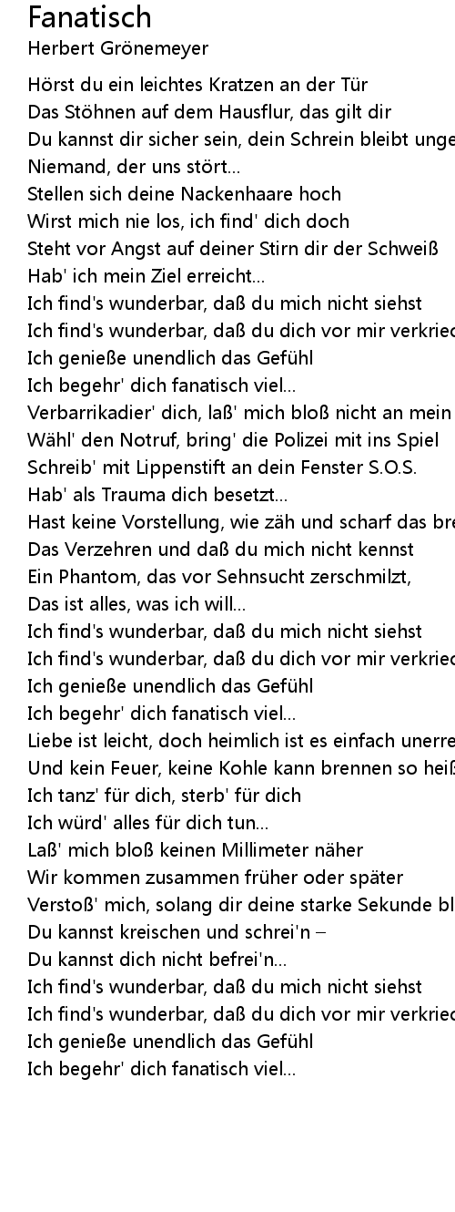 | Ich begehr' dich fanatisch viel... |