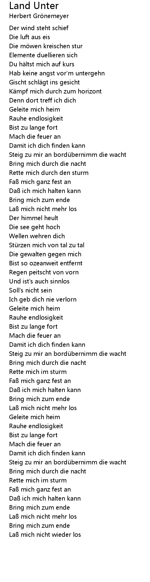 | Song | Land Unter |