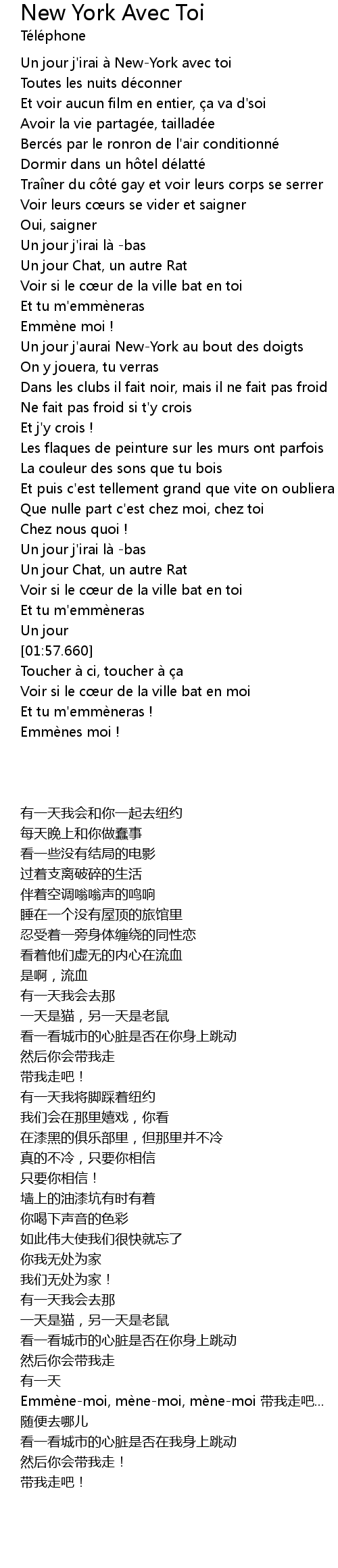 | [00:12.330] | Un jour j' irai à NewYork avec toi |
