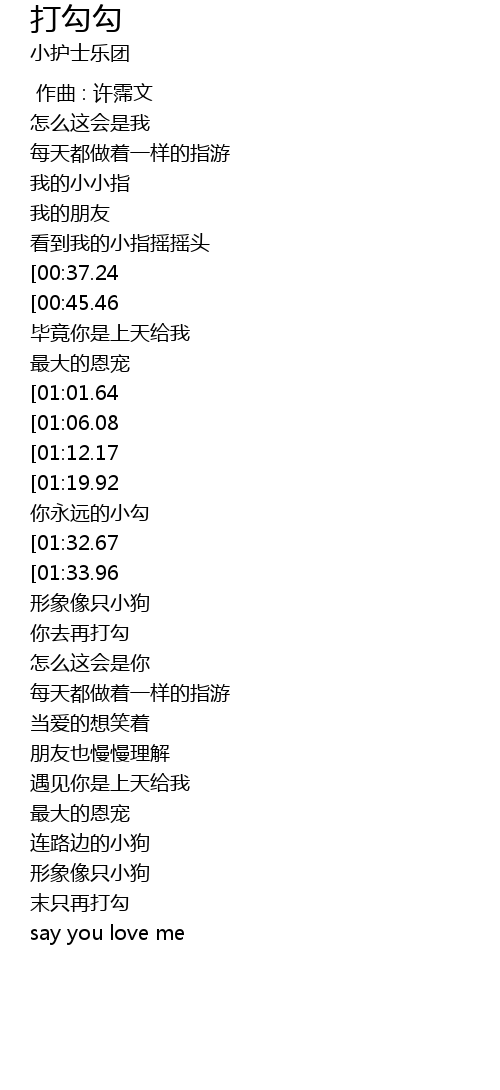 | [02:51.00][01:06.08] | 打勾勾 打勾勾 |