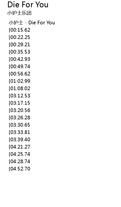 | [00:04.00] | 小护士 - Die For You |