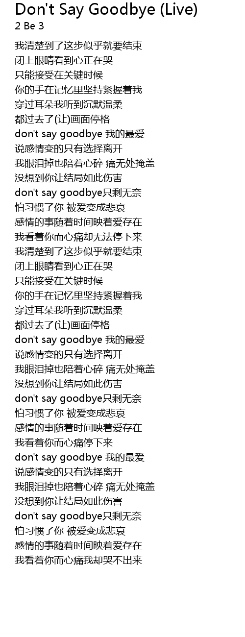 | [02:41.12] | don' t say goodbye wǒ de zuì ài |