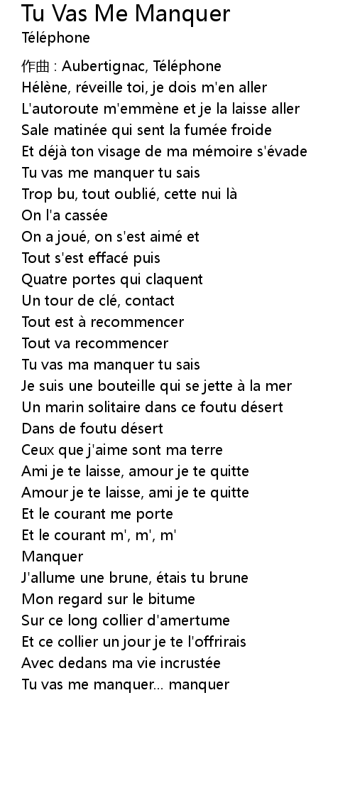 | Tu vas me manquer tu sais | |