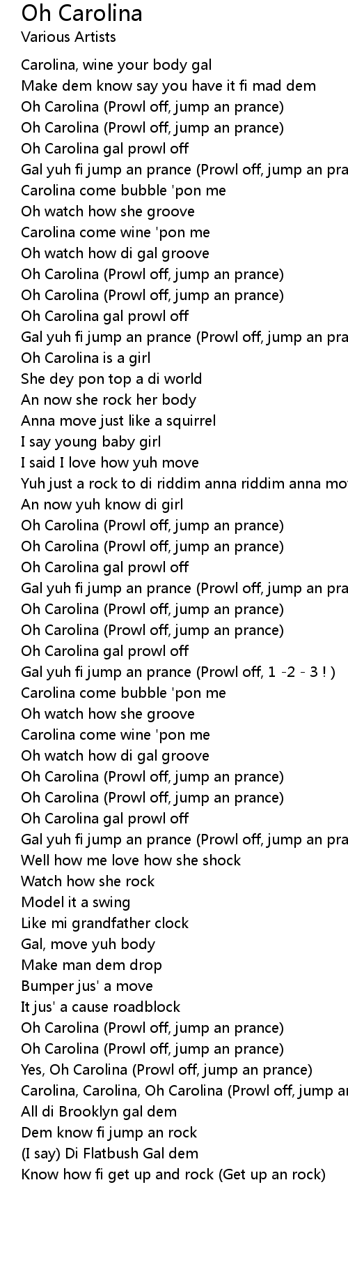 Yes, Oh Carolina (Prowl off, jump an prance) |