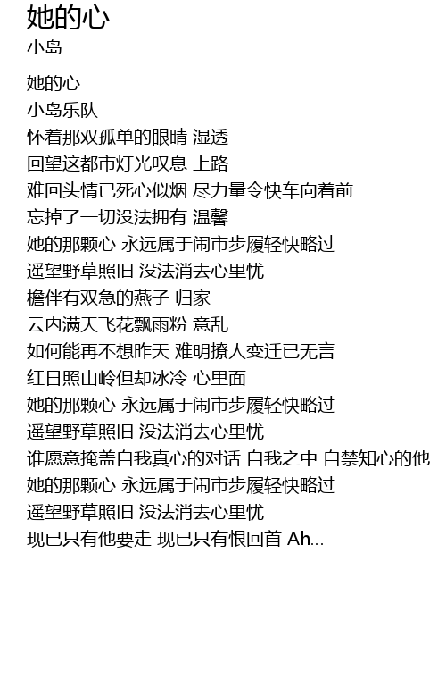 | [00:01.00] | 她的心 |