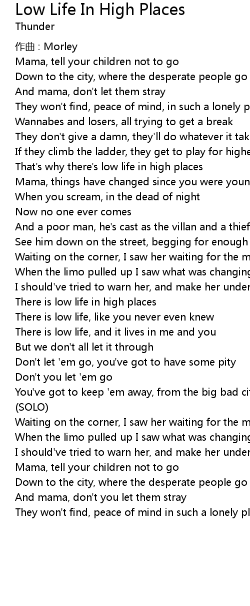 | That' s why there' s low life in high places | |