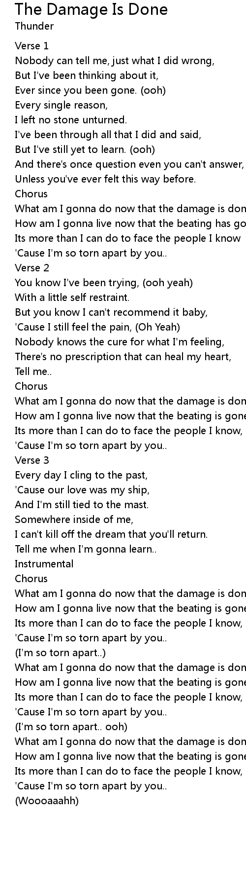 What am I gonna do now that the damage is done? |