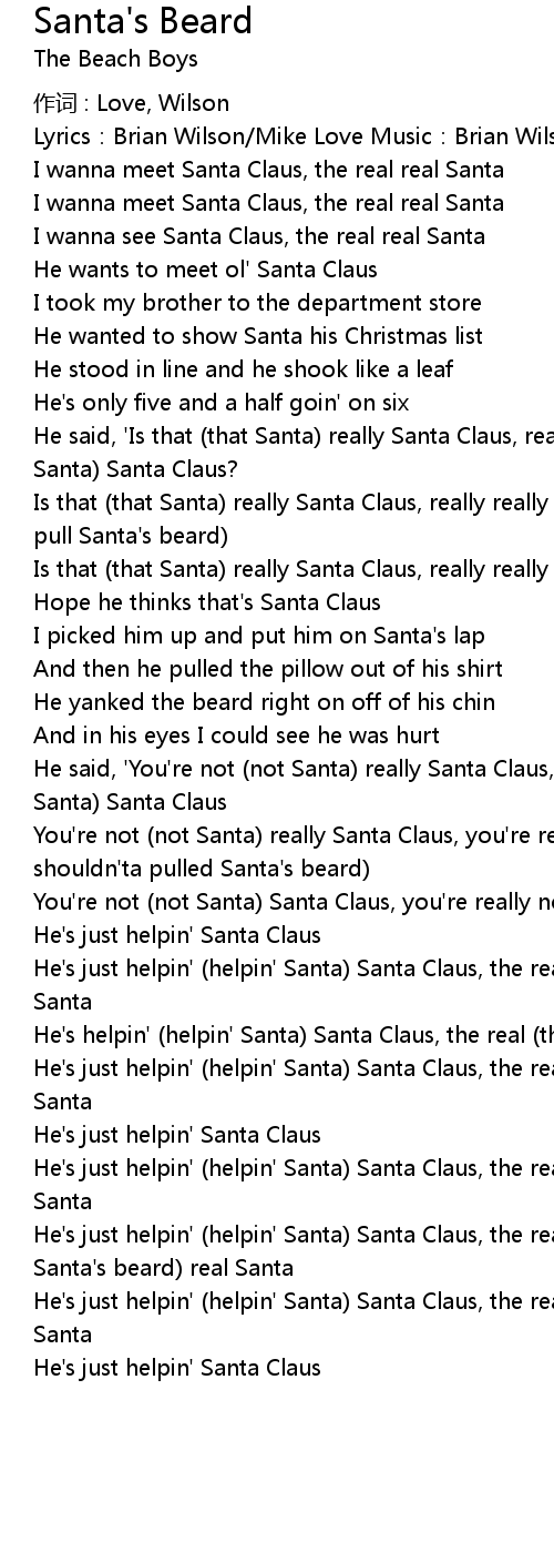 | He' s just helpin' helpin' Santa Santa Claus, the real he shouldn' ta pulled Santa' s beard real Santa | |
