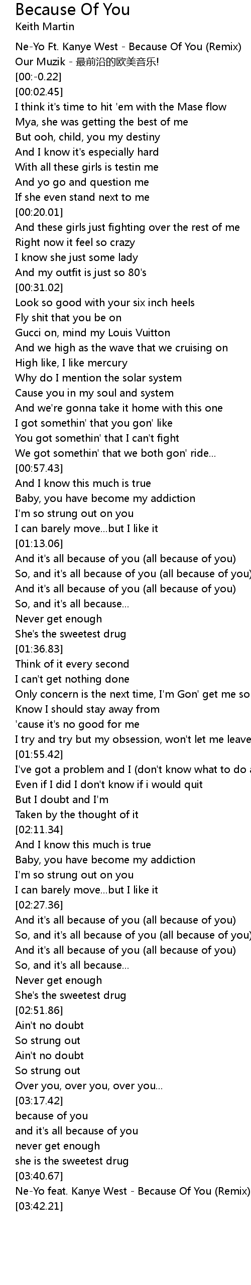 | [03:41.21] | NeYo feat. Kanye West Because Of You Remix |