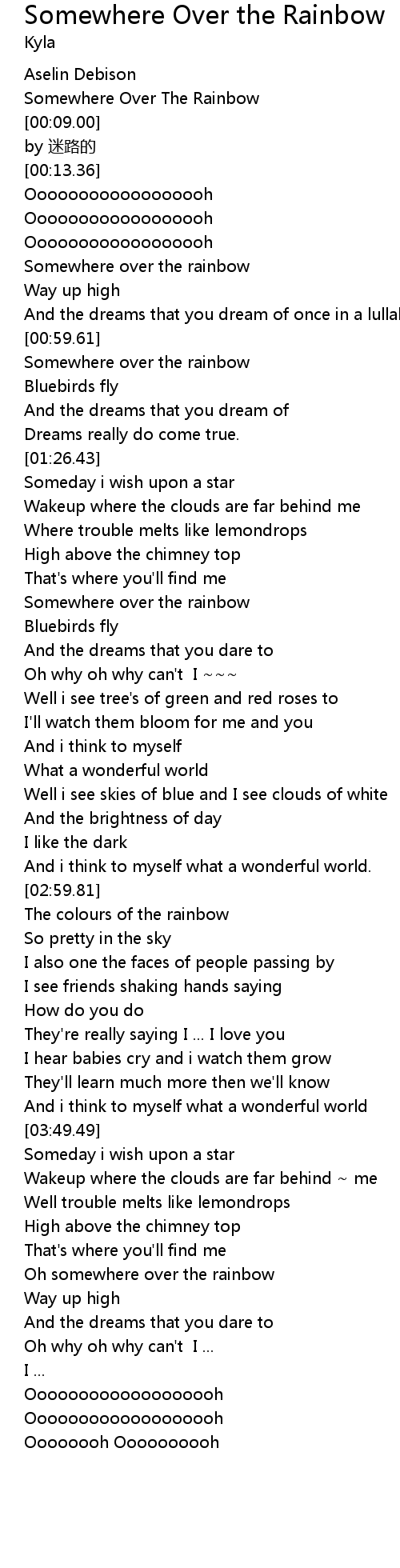 | [01:51.53] | Somewhere over the rainbow |