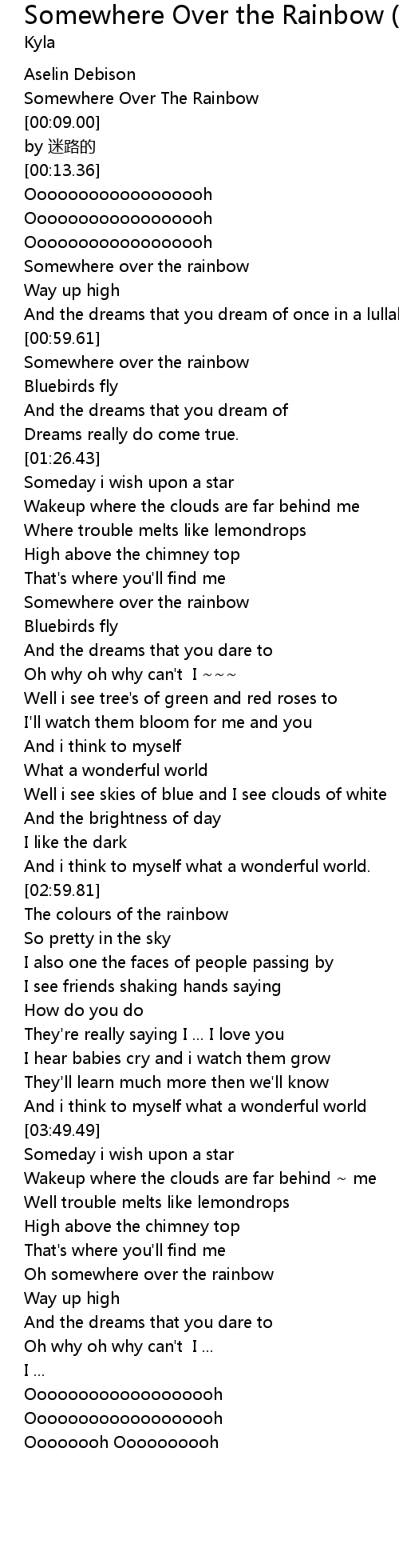 | [01:51.53] | Somewhere over the rainbow |