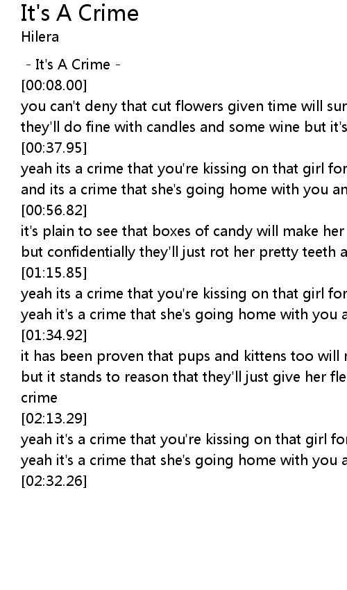 | [02:15.51] | yeah it's a crime that you're kissing on that girl for all to see |